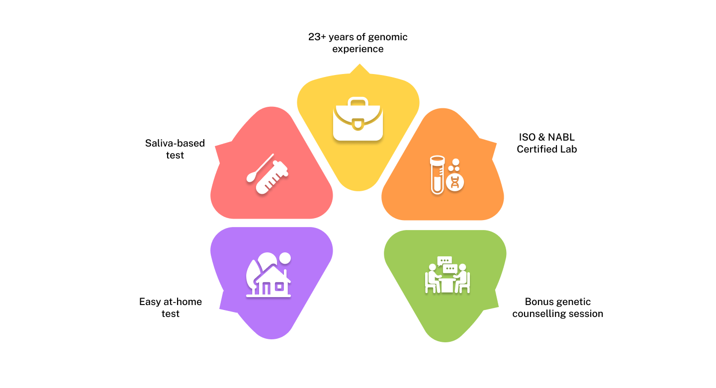 - Bonus Genetic Counsellor Session: Receive a free consultation with a certified Genetic Counsellor to help interpret your genetic insights and optimise your healthcare strategy.